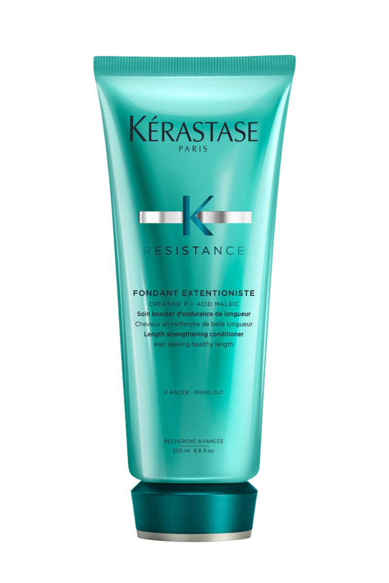 Create smooth, silky and flowing locks with Kérastase Resistance Fondant Extentioniste, a creamy conditioner that expertly detangles strands. Powered by a blend of ceramides and Maleic Acid. The formula helps to fortify the natural hair fibre from the inside out, improving strength and elasticity to encourage growth. Replenishing moisture to the scalp and nourishing from root to tip, the purifying conditioner will leave locks super-soft, supple and noticeably healthy.